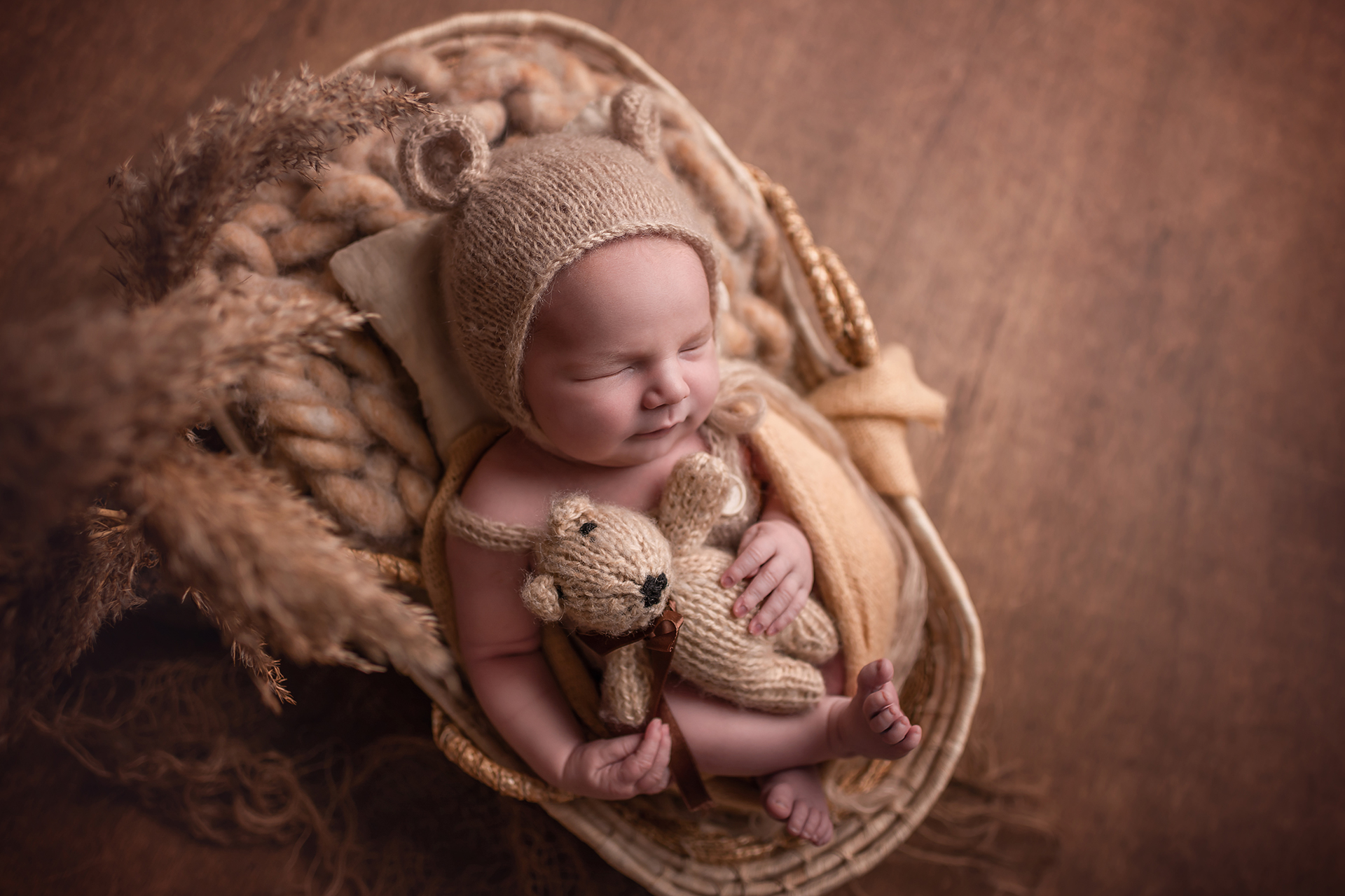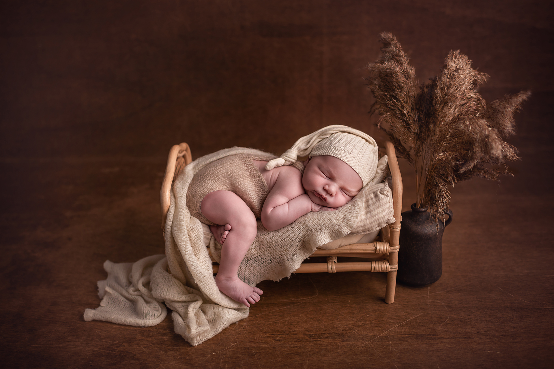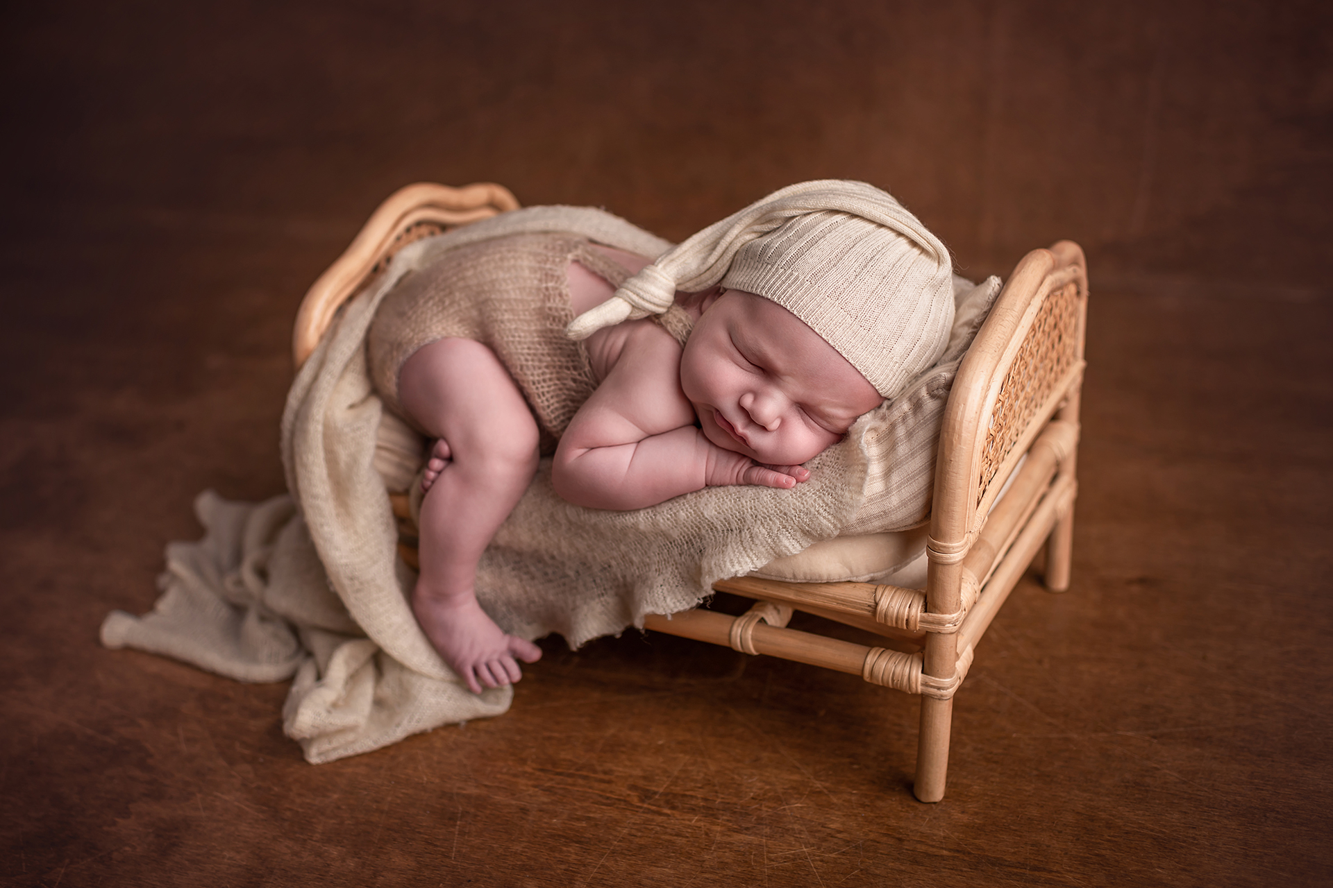 Die beste Zeit für entspannte Neugeborenen-Bilder ist ab dem 5.-21. Lebenstag. In dieser Zeit sind die Kleinen noch sehr entspannt und schlafen viel.